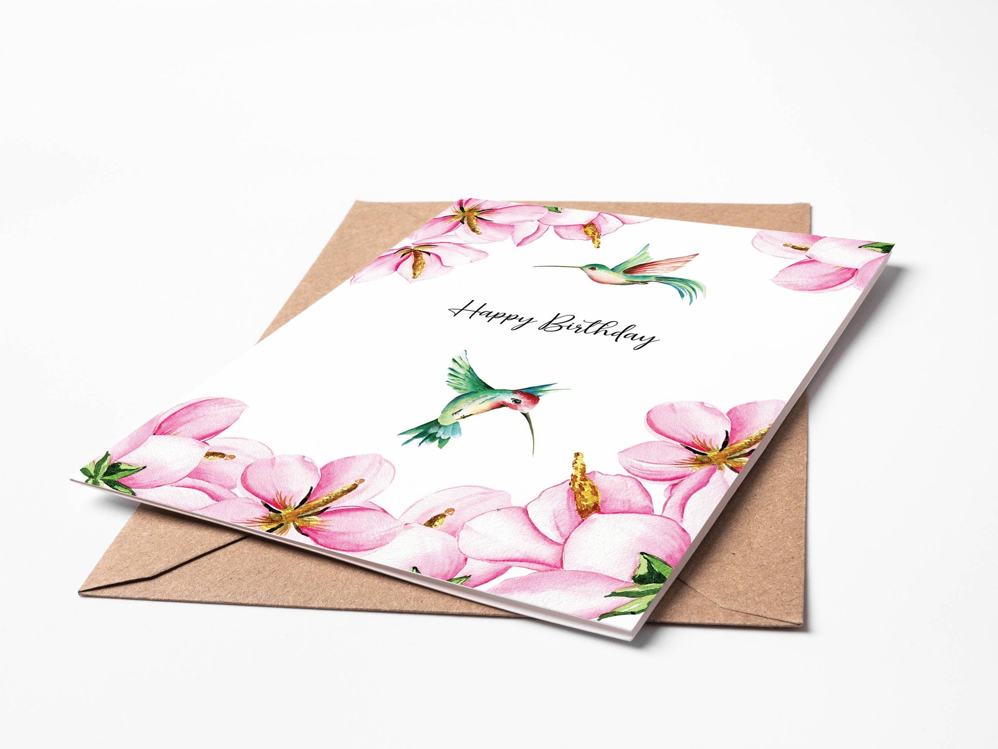 Hummingbird Birthday Card BD06 Nature Garden Flowers