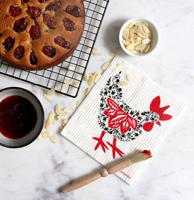 These sponge cloths are guaranteed to bring fresh Scandinavian style into your kitchen. Used in Swedish kitchens since the 1950s, these tried and trusted dishcloths are made of all natural and renewable materials. Highly durable, they are great for washing up, general cleaning and mopping up spills. Matching kitchen towels are available to keep your kitchen looking smart and coordinated. Highly absorbent, they can absorb 15 times its own weight in water. Machine washable. Designed by Jangneus in Sweden. Size: W6.75"x L8". 100% biodegradable. Made of 70% cellulose and 30% cotton